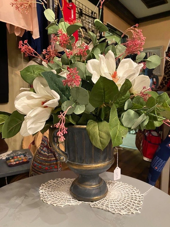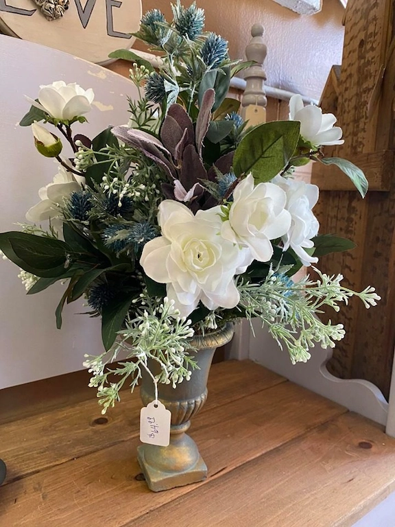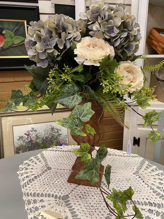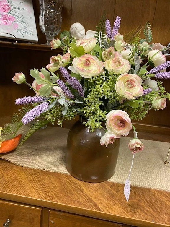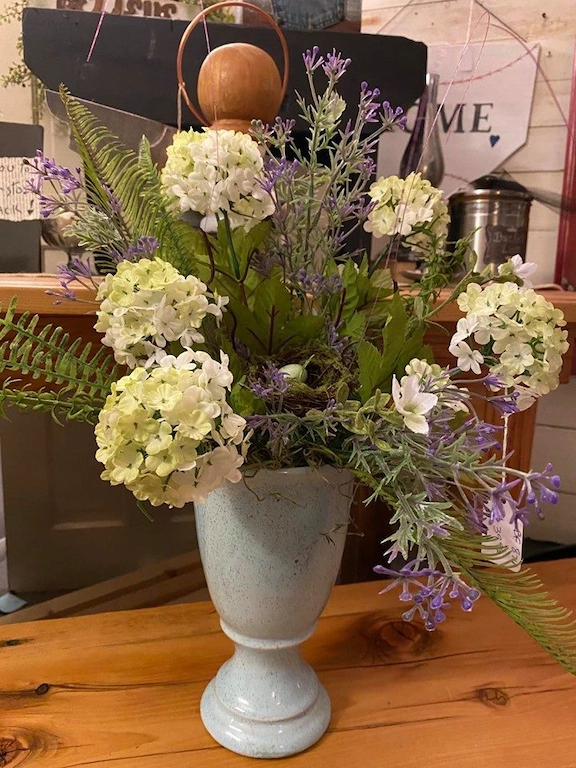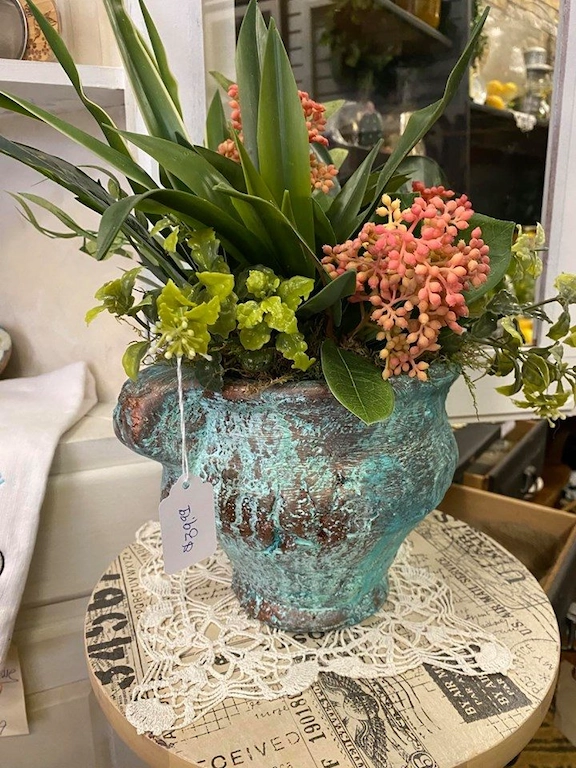 Meet Bobbi Fink of Bedeck, a Greensburg resident. She has a multitude of talents including painting and floral design. Find beautiful floral arrangements in interesting containers that have been repurposed or painted to enhance the beauty of the floral design. Price points from $35 and up. Great for your own personal decor, but make fabulous gifts or a welcomed gift for families that have lost a loved one and can have the arrangement as a keepsake.